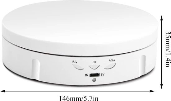 This electric turntable offers 360-degree rotation, ideal for product presentations, jewelry displays, and photography. With a robust capacity of up to 100 kg and a compact size of 15 x 36 cm, it is perfect for wedding cakes and other decorative items. The turntable has a continuous rotation angle of 45°, 90°, 180°, and 360°. Made of durable ABS, it can operate in temperatures from -10 °C to 80 °C. The set includes an electric turntable, an English manual, and a USB cable for easy charging. Note: For optimal performance, use the included USB cable for charging. It is normal for slight jitter to occur when changing the rotation angle due to rotational inertia.