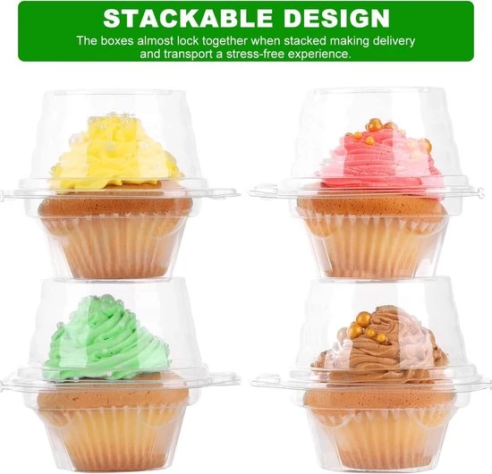 [Transparent Design] These boxes are transparent for clear vision, clearly shows delicious cupcake without smashing or dirty cupcake, and can always keep them fresh