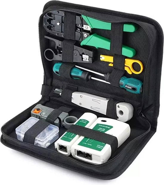 COMPLETE SET - The set includes a cable tester, one LSA punch-down tool, crimping pliers, wire strippers, screwdrivers, etc. This kit allows you to eliminate all errors in your cabling and is a must-have for every network installer.
