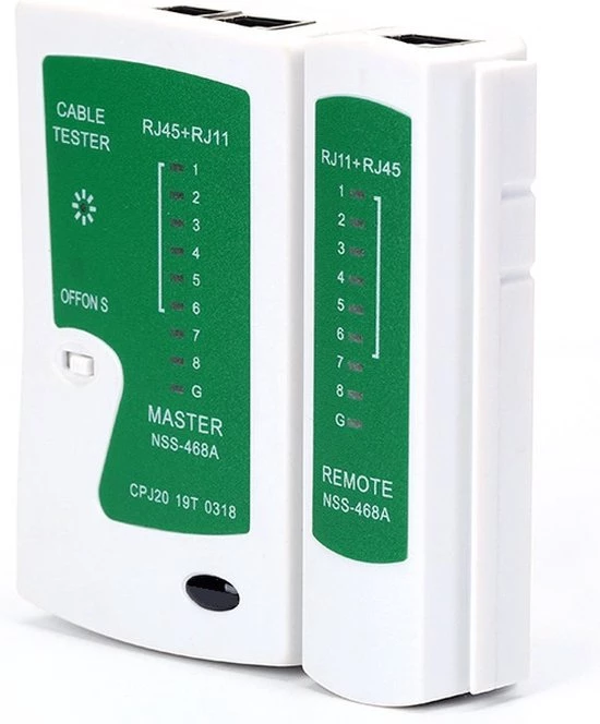 TESTER - designed for testing UTP, FTP, STP, and RJ45 and RJ11 telephone cables. Nine LEDs indicate the correct quality, allowing you to detect faulty connections, short circuits, and interruptions in the wiring.