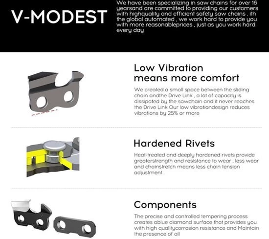 In addition, the design of the bumper drive links is specially designed to reduce the risk of kickback, making the chainsaw chain even safer to use.
