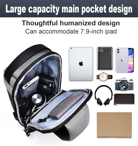 USB Charging Port: This men's and women's crossbody sling backpack comes with a USB charging port (power bank not included) for charging electronic devices via your own power bank. You can charge your devices hands-free while on the go, anytime, anywhere, during outdoor activities and everyday use.
