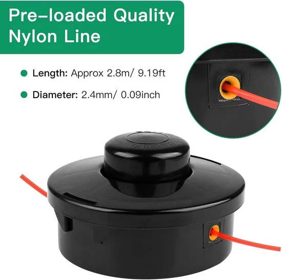 Advantages of this trimmer head:This replacement trimmer head is compatible with most straight-shaft trimmers with an M10 x 1.25 left-hand thread. Please check your trimmer's size before purchasing this product. The trimmer head and 1.6mm trimmer line are made of high-quality nylon, making them thicker and more durable than standard trimmer line. This makes them fully compatible replacements or spare parts for your trimmer.