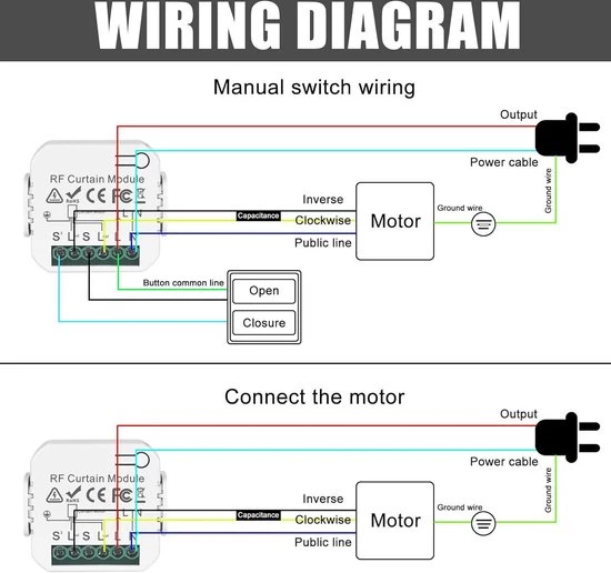 The wireless switch is easy to install and effortless to learn. The remote control is pre-programmed into the receiver at the factory. The receiver fits into any standard flush-mounted box and can be easily connected to your switch and motor. This way, you can start using the remote control right away.