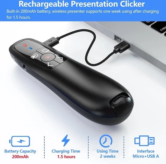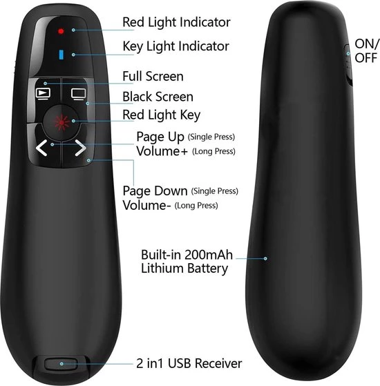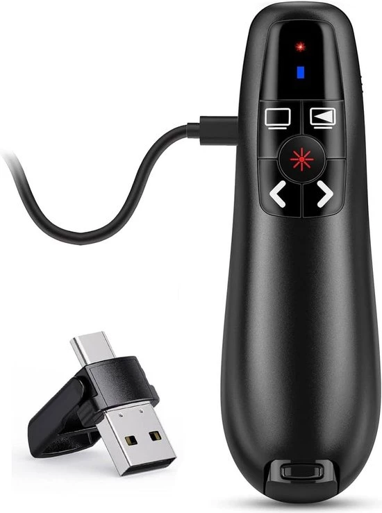 Make your presentations professional and effortless with this 2-in-1 USB Type C and rechargeable presentation remote. Order now and improve your presentation skills!