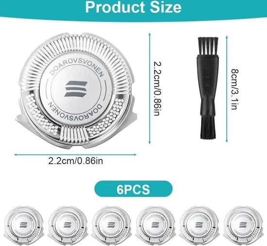 Our shaving heads come with a total of 3 pieces, plus a cleaning brush. The product has a diameter of 22 mm, which is ideal for quick and close shaves. Please note that these are not original shaving heads, but replacement shaving heads that offer a cost-effective alternative.
