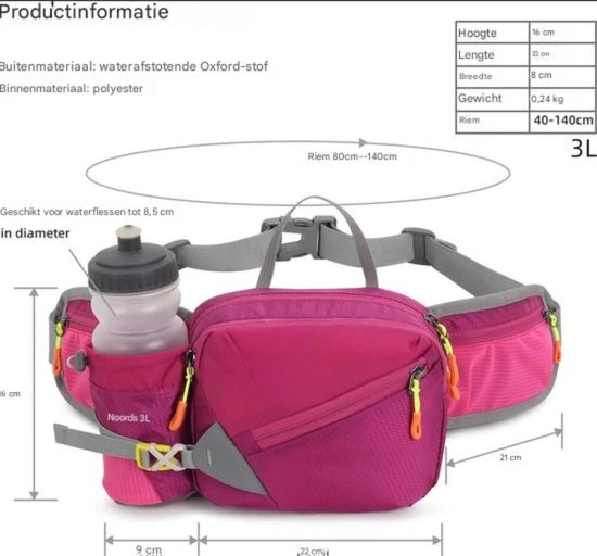 Compact and spacious design: With a size of 22 x 16 x 8 cm and a capacity of approximately 3 liters, this waist bag offers ample space for daily essentials such as sunglasses, gloves, mini umbrella or wallet.