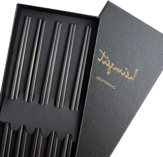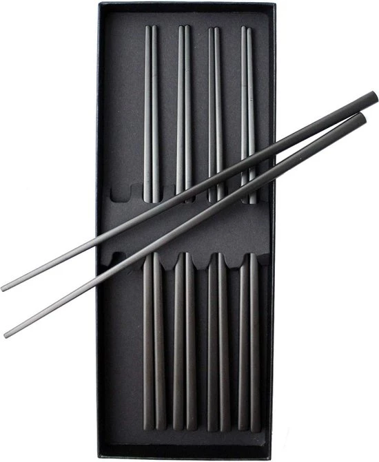 High Quality Stainless Steel Chopsticks - 5 Pairs Black Sushi Sticks - Metal Chopsticks - Dishwasher Safe and Reusable Chopsticks (4800325803302)