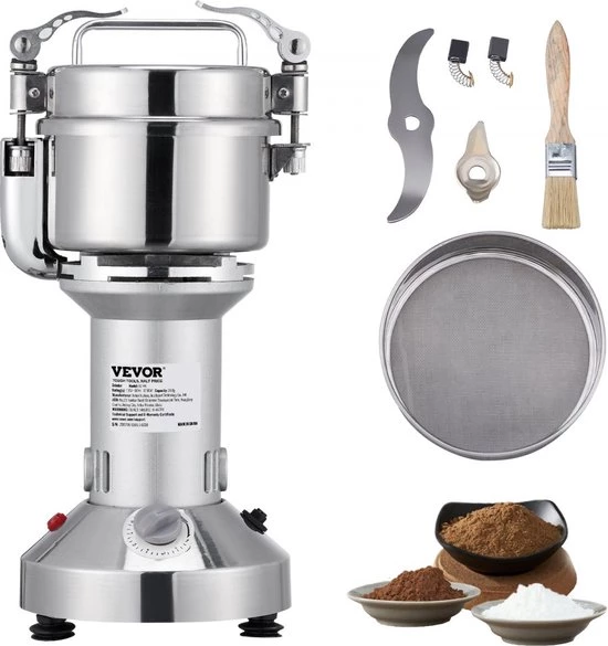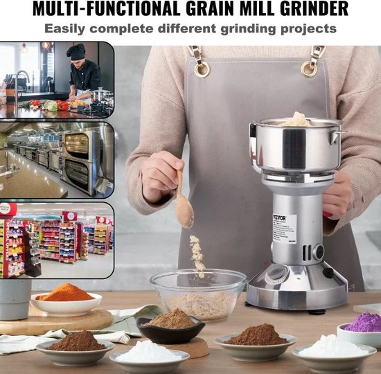 Multifunctional Dry Mill: The powder mill can handle various dried materials, including ① grains (soybean, corn, barley, wheat, oats, rye, peas, coffee beans), ② spices (fennel, pepper, cinnamon, rosemary) ③ herbs (if you grind herbal medicine and other hard objects, please cut them into small pieces first). (Not suitable for wet, fresh, oily or sticky materials.) It is widely used in families, kitchens, hospitals and medicine factories.