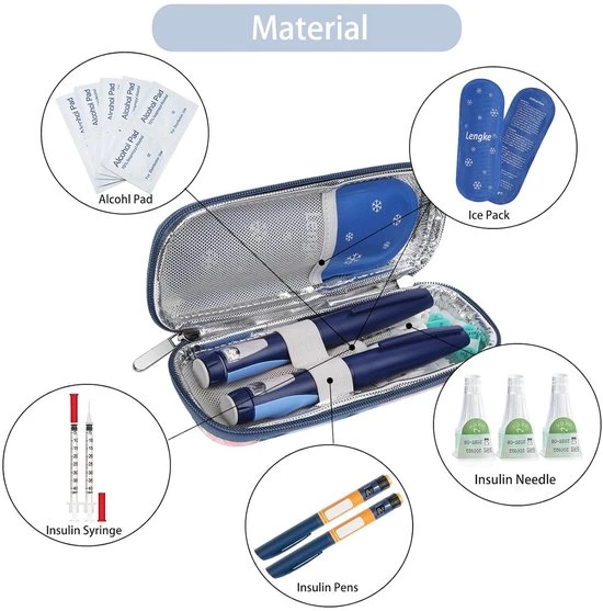 Measuring approximately 20 x 7 x 5 cm, our insulin bag is perfect for everyday use, business trips, excursions, and camping. Suitable for storing insulin syringes, pens, needles, and more.