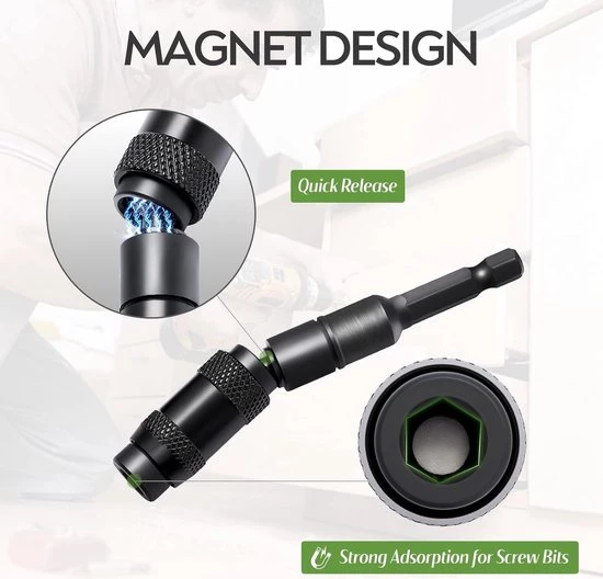 The bit holder is equipped with a strong magnet in the head, which reduces the risk of slipping and minimizes vibrations during drilling. This ensures a more stable and accurate drilling experience.