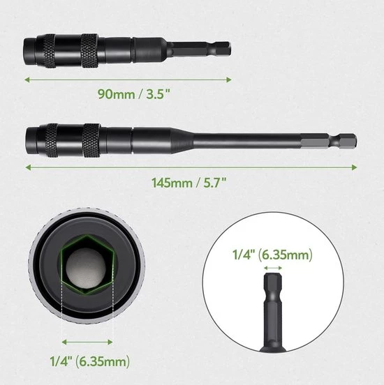 This product is available in two different lengths: 90 mm and 145 mm. The flexible screwdriver chucks can rotate 20 degrees, making them ideal for angle wrenches in tight spaces and corners, meeting your needs in a variety of situations.