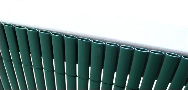 This privacy screen is made of UV-resistant PVC. It blocks the wind, the sun and especially the gaze of passers-by because it is 100% opaque. Can also be used as a patio windbreak or to create shade on a balcony. The 12 mm wide PVC profiles are tied together with nylon thread.