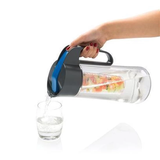 This carafe with infuser is made of tritan and is 100% BPA free. In this carafe you can make 2 liters of fruit water and the lid keeps the water fresh for a long time. The easy-pour cap makes it easy to serve the water.