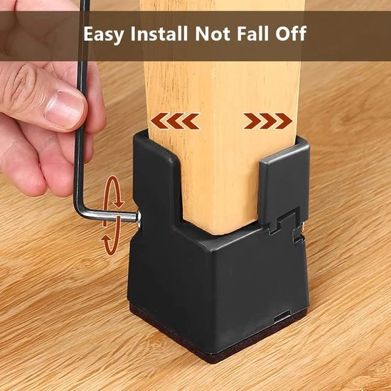 Safe and not easy to fall off: Our furniture risers hold the frame firmly with the help of clamp mounting structure. The notch height is up to 3cm, so it will not fall off easily and will not make the furniture wobble. The sturdy sofa leg risers have high-density felt on the bottom to protect your floors, hardwood, tile, linoleum or carpet will not be damaged, and our included 4 EVA gaskets provide an extra layer of protection.