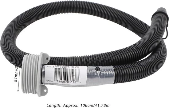 This inflation hose is suitable for various models, including the P05341, Lay Z spa, air jet, and inflatable massage tubs. With a length of 106 cm and a 51 mm male thread, installation is a breeze, allowing you to quickly resume enjoying your spa experience. Professional craftsmanship ensures optimal performance and reliability, while the durable plastic material provides a long-lasting and reusable solution for your inflatable hot tub.