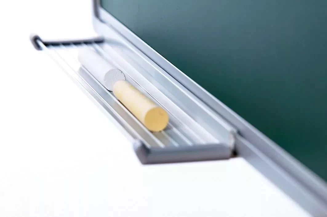 Krijtbord in groen of grijs geëmailleerd staal. Magnetisch en uitwisbaar. Geanodiseerd aluminium softline profiel met kunststof grijze hoeken. Inclusief ophangmateriaal en stiftbakje van 30 cm.