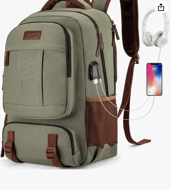 [USB and Headphone Port] This backpack features an external USB port with a built-in charging cable, allowing you to conveniently charge your phone by connecting your own power bank. The external headphone port also provides easy access for using earphones. (Battery not included.)