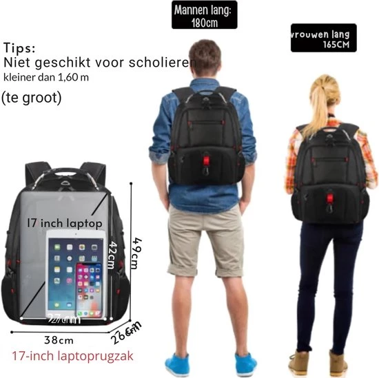 Laptop Backpack - Waterproof and Anti-Theft - Suitable for 17-Inch Laptop - For Work and School (8721085207499)