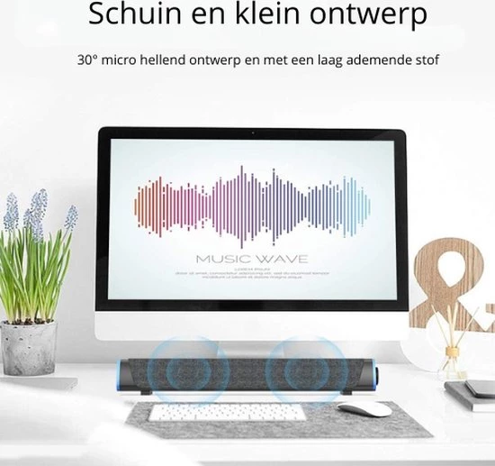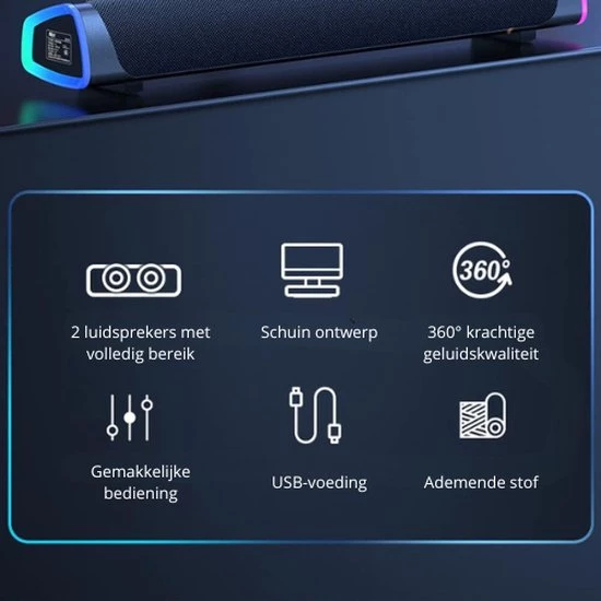 Experience audio on a whole new level with this advanced soundbar speaker. Engineered with powerful booster technology and dual full-range speakers, this soundbar delivers stunningly clear and captivating sound, even at low volumes. The 30-degree angled design ensures optimal sound transmission, while the exterior of the speaker is covered with breathable material to prevent dust. With a simple USB connection for power and a 3.5mm audio jack for sound, operation is effortless. Simply turn the volume knob to start the musical oomph, while a small button on the back switches the RGB light flow ON/OFF for a more appealing atmosphere while listening to music or watching movies.