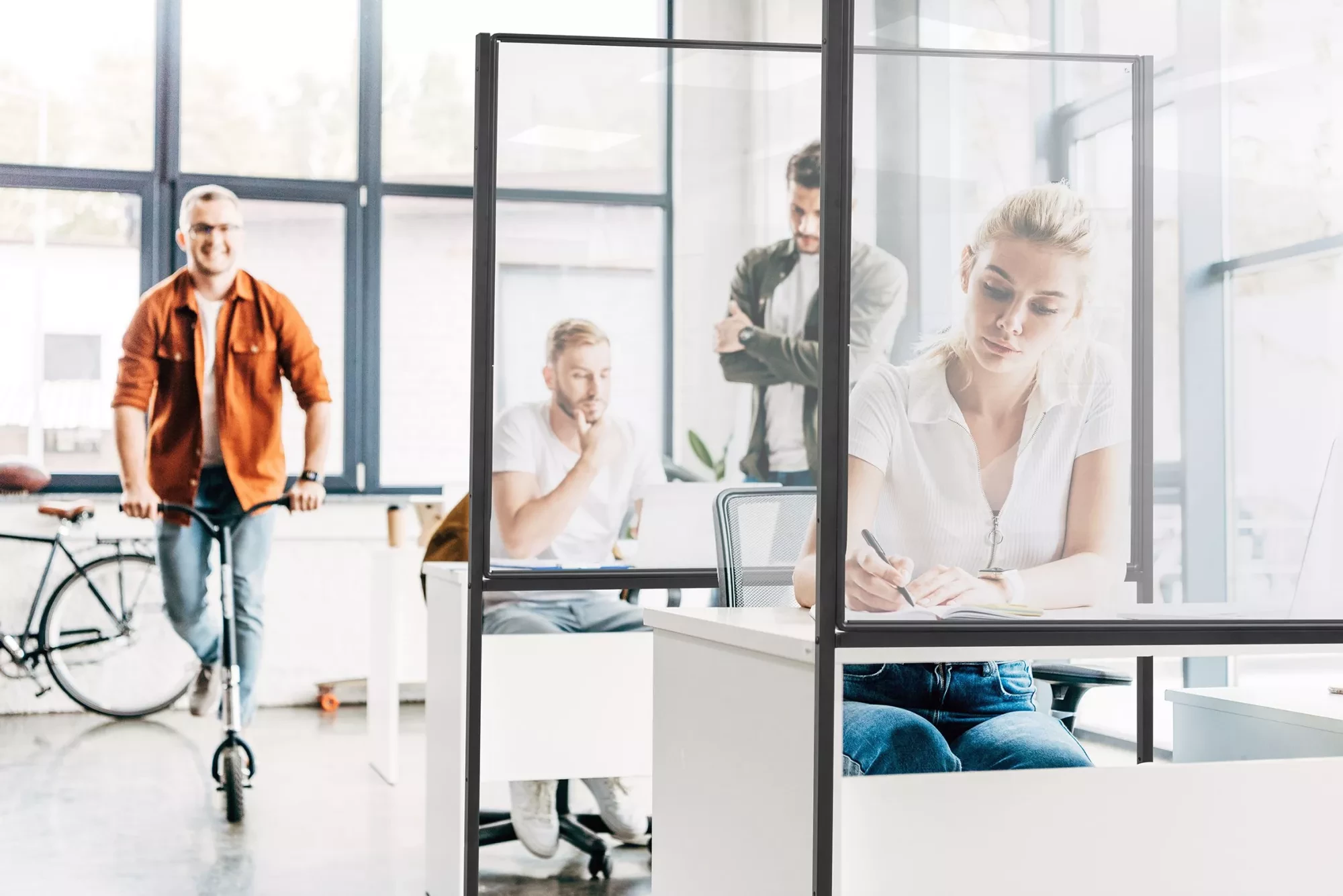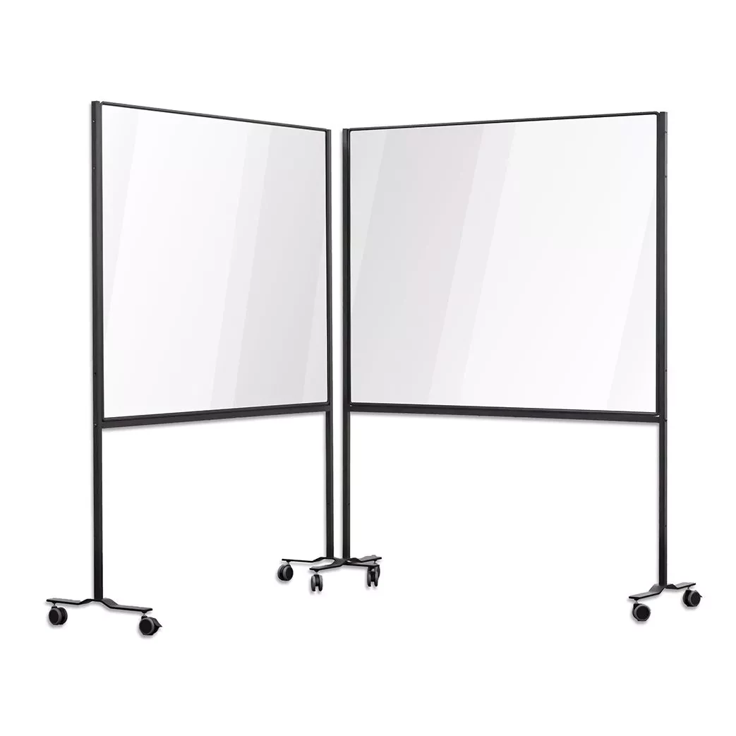 The Workboard is easy to move from workplace to workplace for flexible use in the room. Place the board between 2 desks for a quick separation of workplaces. In addition, several Workboards can be driven together at right angles to create corner divisions in the room. And if they are not needed, they can be compactly driven together.