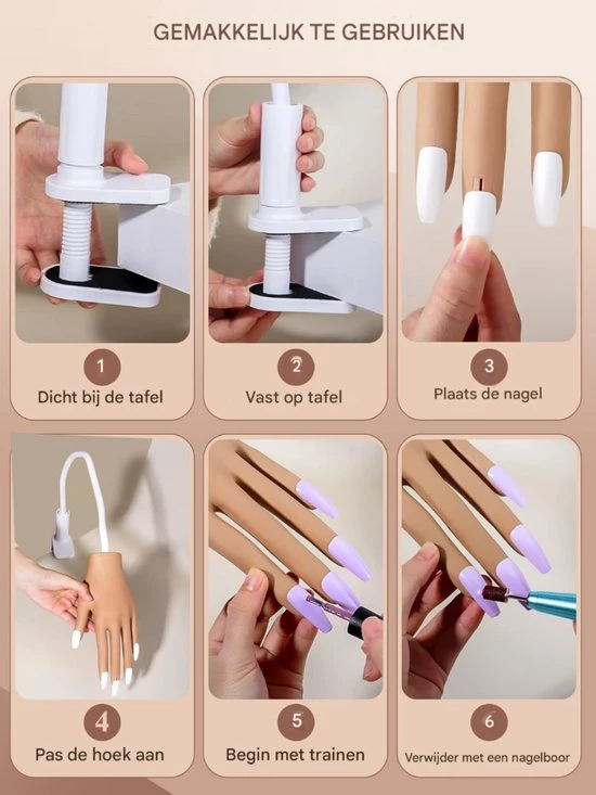 Nail Trainer - Easy to Use for Beginners - Realistic Practice Hand for Acrylic and Gel Nails - Suitable for Training and Courses - Compact Design (8721085226834)