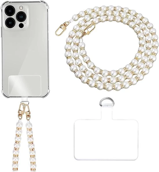 The phone chain is the perfect combination of style and functionality. This beautiful pearl strap is designed to hang elegantly around your neck, keeping your smartphone within reach at all times. The shoulder-crossbody strap design makes it ideal for everyday use.