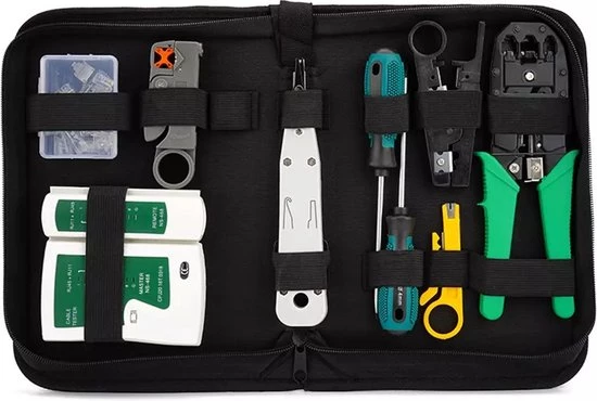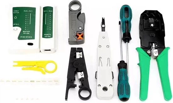 COMPLETE SET - The set includes a cable tester, one LSA punch-down tool, crimping pliers, wire strippers, screwdrivers, etc. This kit allows you to eliminate all errors in your cabling and is a must-have for every network installer.