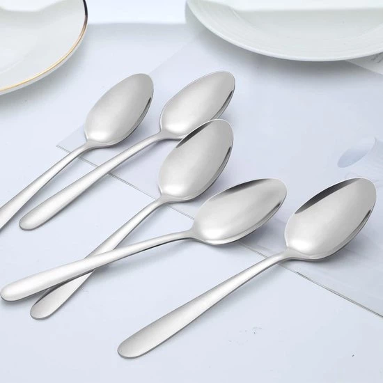 Classic and elegant design: The stainless steel tablespoons are carefully designed to add more elegance to your table. Our spoons have a classic and clean design, which matches your existing cutlery to enhance the dining experience.