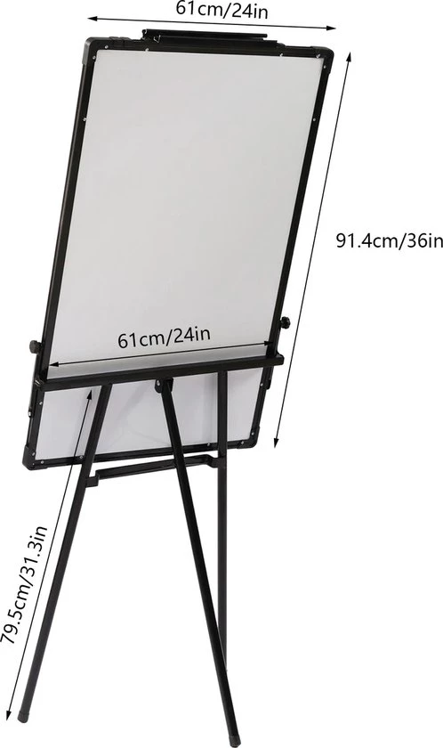 Meet the versatile and convenient ShopEighty8 Flipover Whiteboard! This magnetic whiteboard with adjustable stand offers the perfect solution for all your presentations, lessons and meetings. With a sleek black design and a range of useful features, this whiteboard is a must-have for any professional environment.