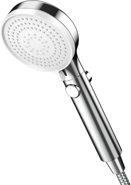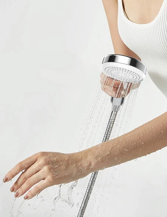 Enjoy a refreshing shower experience This shower head with a stop function offers you the ultimate shower experience while also reducing water consumption. The high-quality, water-saving shower head is designed to deliver perfect water pressure, even at low pressure, so you can always enjoy a refreshing shower. Benefits of this shower head Three spray modes: Choose from different spray settings for a personalized shower. Stop function: Save water and energy by simply interrupting the water flow. High Pressure: Increases water pressure for a refreshing and powerful shower. Universal Design: Suitable for most showers, baths and tile floors. Stylish chrome: Adds a modern look to your bathroom. Product features Color: Chrome Material: High-quality plastic and steel Dimensions: Standard size suitable for most showers Includes mounting hardware for easy installation Transform your daily shower into a luxurious experience with this multifunctional shower head. Perfect for home use and an eco-friendly choice for conscious water consumption!