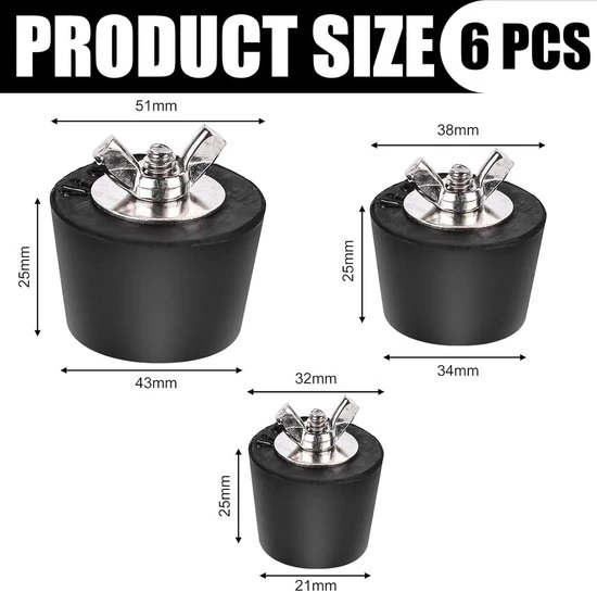 - Contents: 6 stoppers of different sizes (32mm/38mm/51mm)