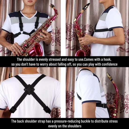 Advantages:The saxophone strap is durable, soft, and comfortable to use. Its ergonomic design ensures a comfortable playing experience and helps reduce pressure on your back and spine. The stainless steel collar ensures the strap remains firm and doesn't deform.