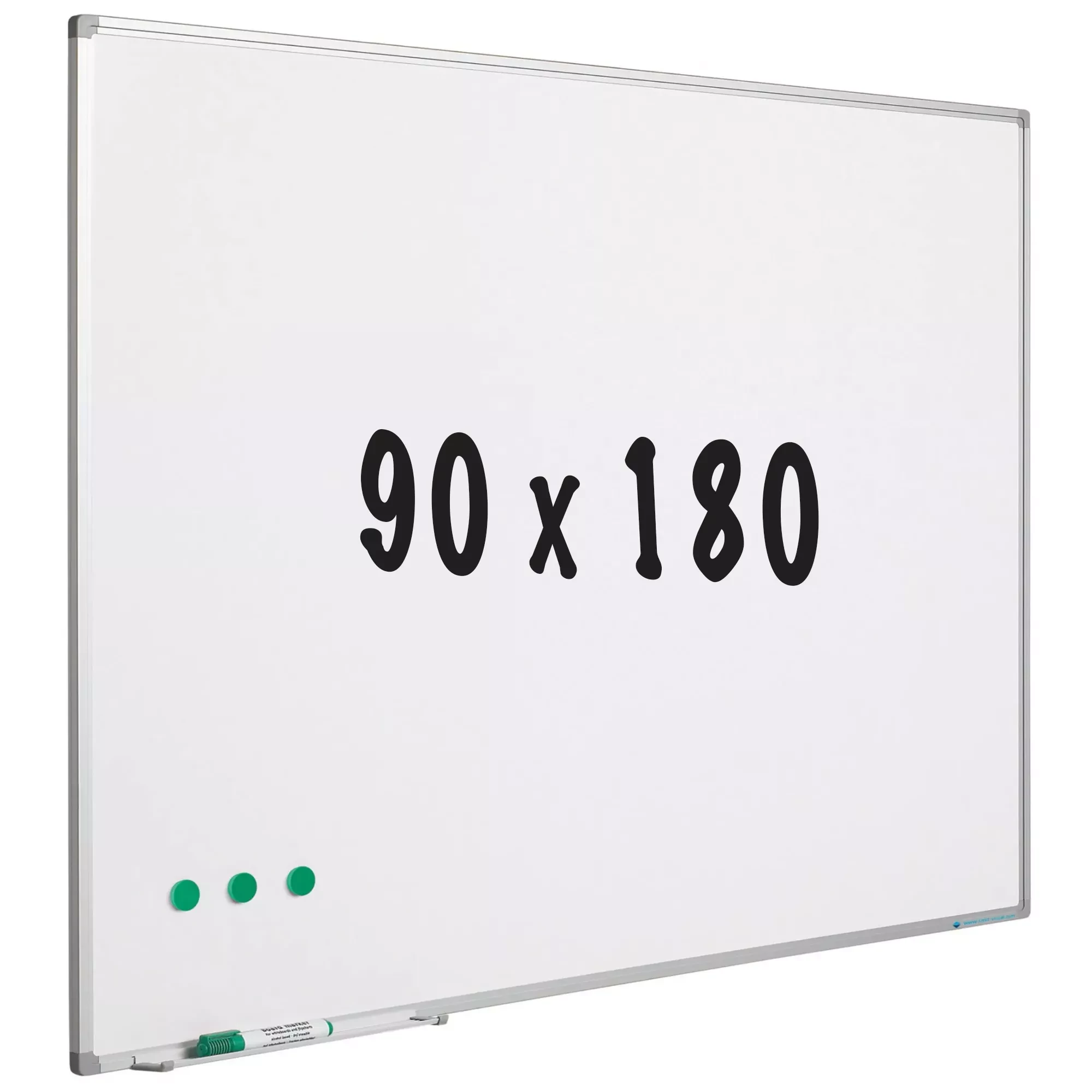 Whiteboard in white lacquered steel. A cost-effective alternative to normal whiteboards. Anodized aluminum Softline profile with plastic gray corners. Including marker tray of 30 cm